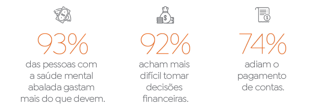 Também já é comprovado que pessoas com a saúde mental debilitada, dificilmente, conseguem gerir bem as suas finanças. E isso porque, normalmente, doenças mentais alteram as emoções e os comportamentos humanos, o que aumenta o fator da impulsividade, por exemplo.